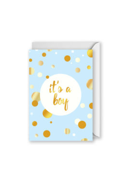 Foiled Vertical Birthday Card: “Happy Birthday ” Lime and Silver Spots on Blue
