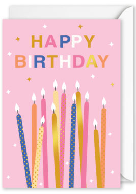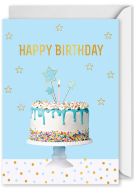 Foiled Vertical Birthday Card: “Happy Birthday” Birthday Cake with Stars