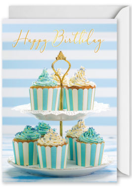 Foiled Vertical Birthday Card: “Happy Birthday” Blue Cupcakes