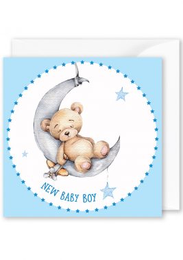 Square Card: “New Baby Boy” Bear on Blue