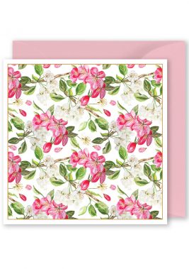 Foiled Blank Square Card: Pink Flowers