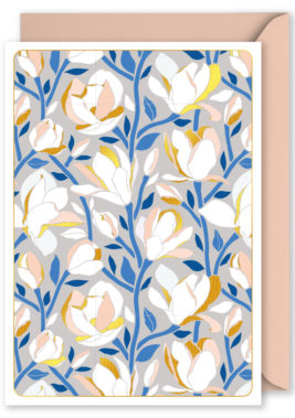 Foiled Blank Vertical Card: White Floral Pattern on Grey