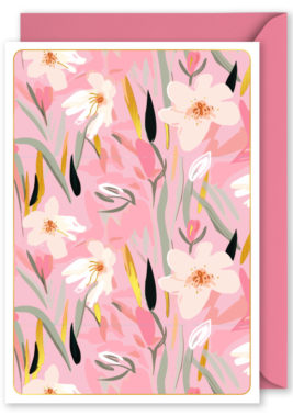 Foiled Blank Vertical Card: Pink Floral Pattern