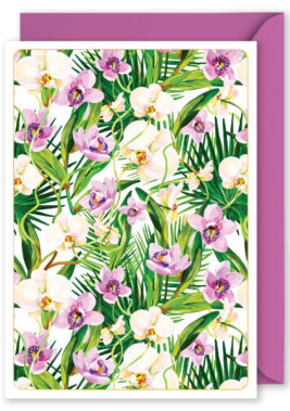 Foiled Blank Vertical Card: Purple and White Orchids