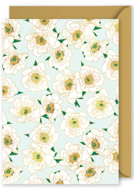Foiled Blank Vertical Card: Peony Roses