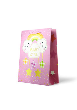 Gift Bag Medium: “BABY GIRL” Rainbow Mobile with Gold Glitter