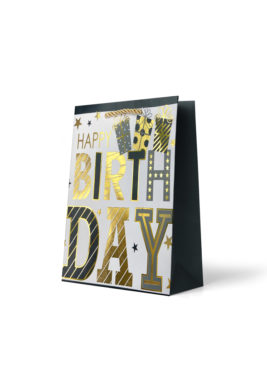 Gift Bag Large: “Happy Birthday” Foiled Gold & Black Lettering