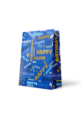 Gift Bag Medium: “Happy Birthday” Presents with Gold Foiling
