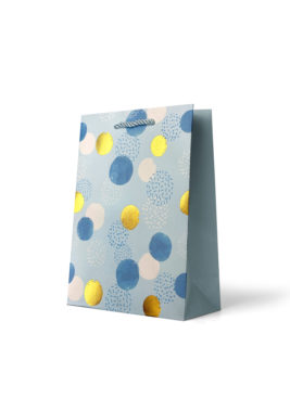 Gift Bag Medium: Foiled Gold & Blue Spots