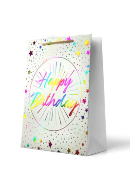 Gift Bag Large: “Happy Birthday” Rainbow Foiling with Stars