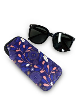 Neoprene Sunglasses Case – Blue Floral Circle Pattern