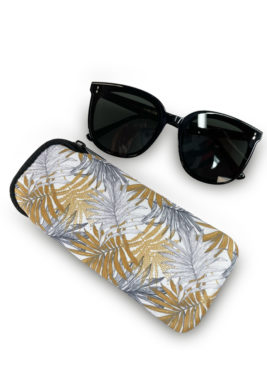 Neoprene Sunglasses Case – Gold & Grey Palm Pattern