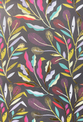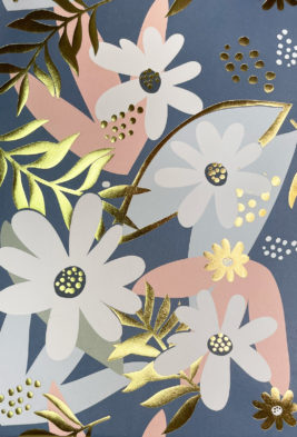 Foiled: Pastel Flowers and Gold Leaves on Dark Blue