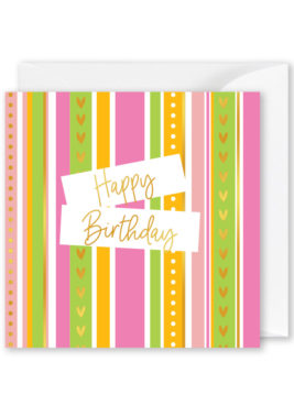 Foiled Square Card: “Happy Birthday” Pink and Green Patterned Stripes