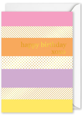 Foiled: “Happy Birthday XOXO” on Pink and Orange Pattern