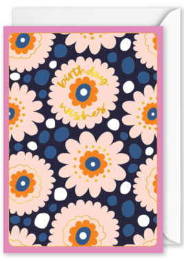 Foiled Card: “Birthday wishes” – Big flowers on dark
