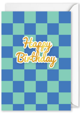 Foiled Card: “Happy Birthday”- Blue green checkers
