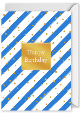 Foiled Vertical Birthday Card: “Happy Birthday” – Diagonal Stripes Blue