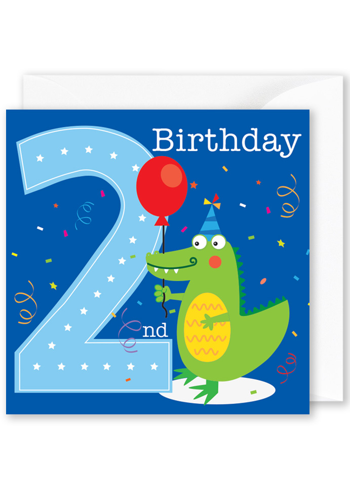 Square card: “2nd Birthday” Cute Crocodile
