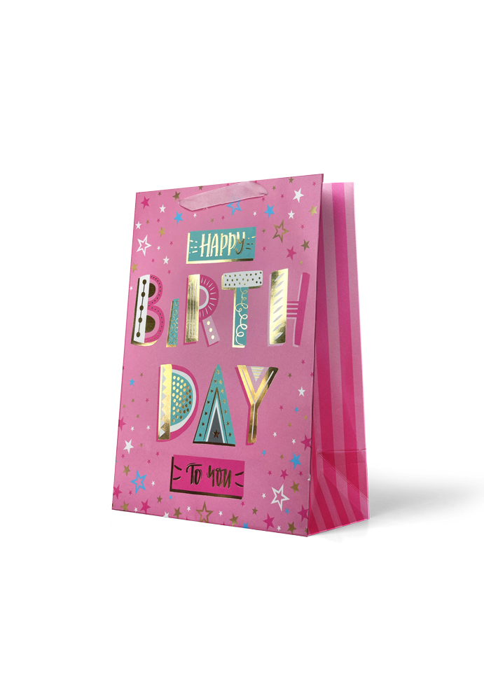 Gift Bag Medium: “Happy Birthday” Funky Writing on Pink