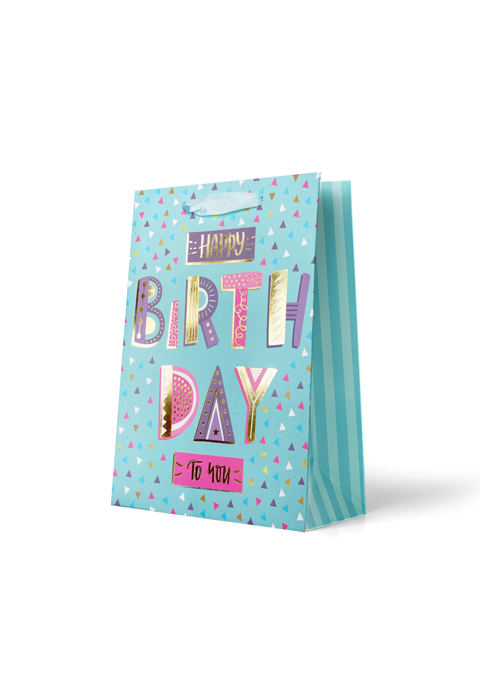 Gift Bag Medium: “Happy Birthday to you” Foiled Writing on Aqua