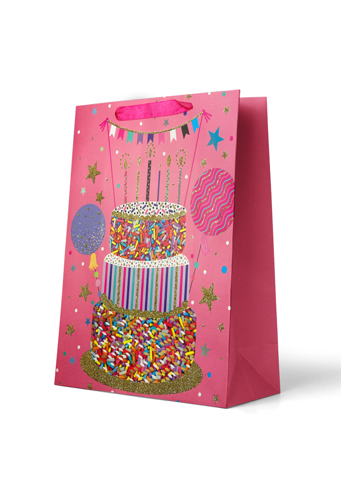 Gift Bag Large: Gold Glitter Cake with Sprinkles