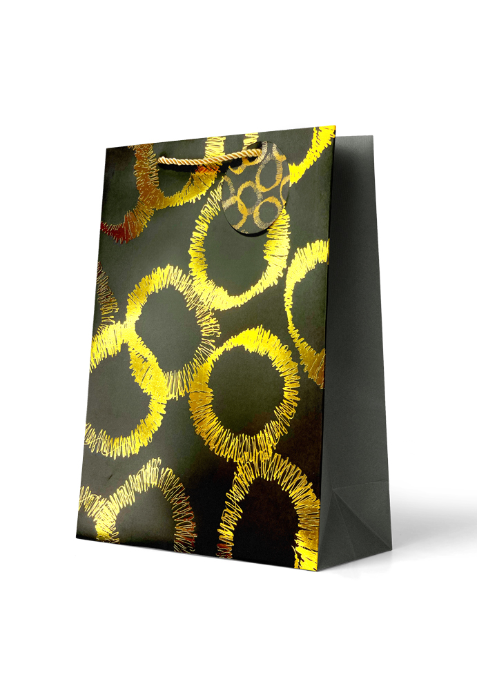 Gift Bag Large: Gold Foiled Circle Pattern on Black