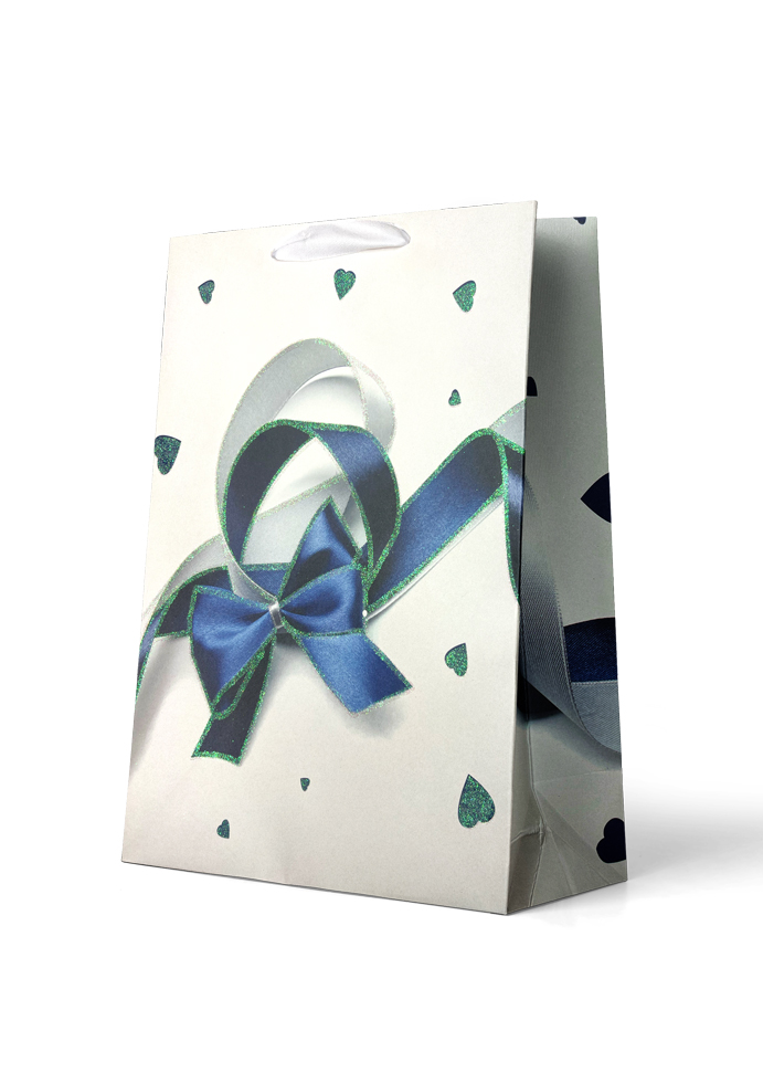 Gift Bag Large: Blue & Glitter Bow on White