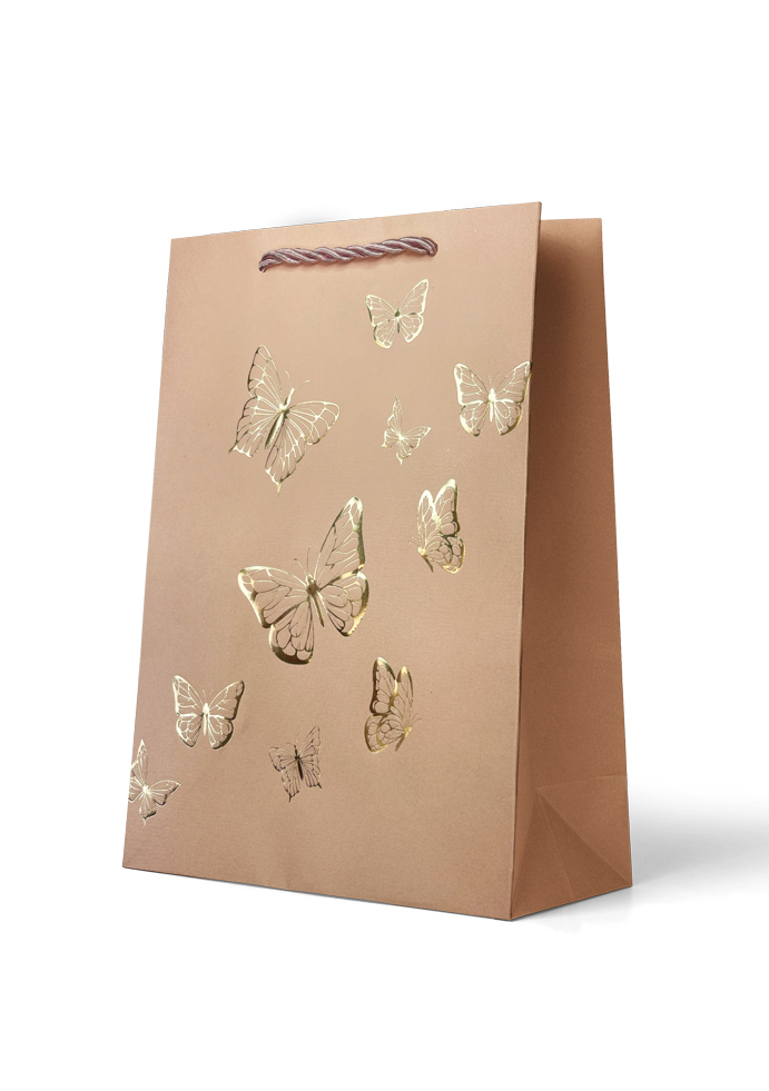 Gift Bag Large: Gold Foiled Butterflies on Pink