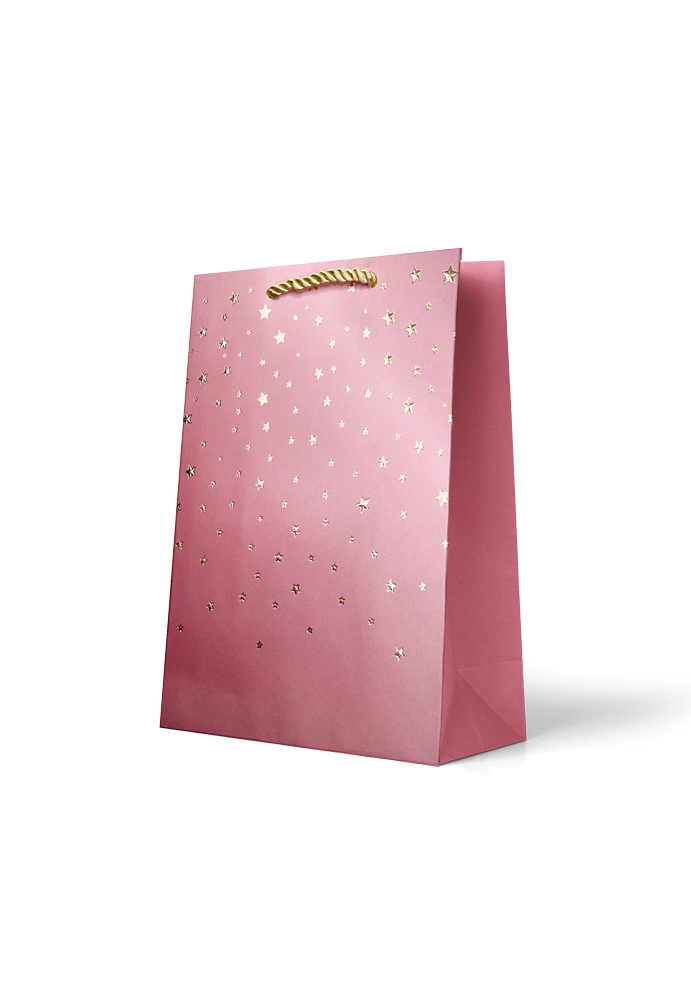 Gift Bag Medium: Small Gold Stars on Pink