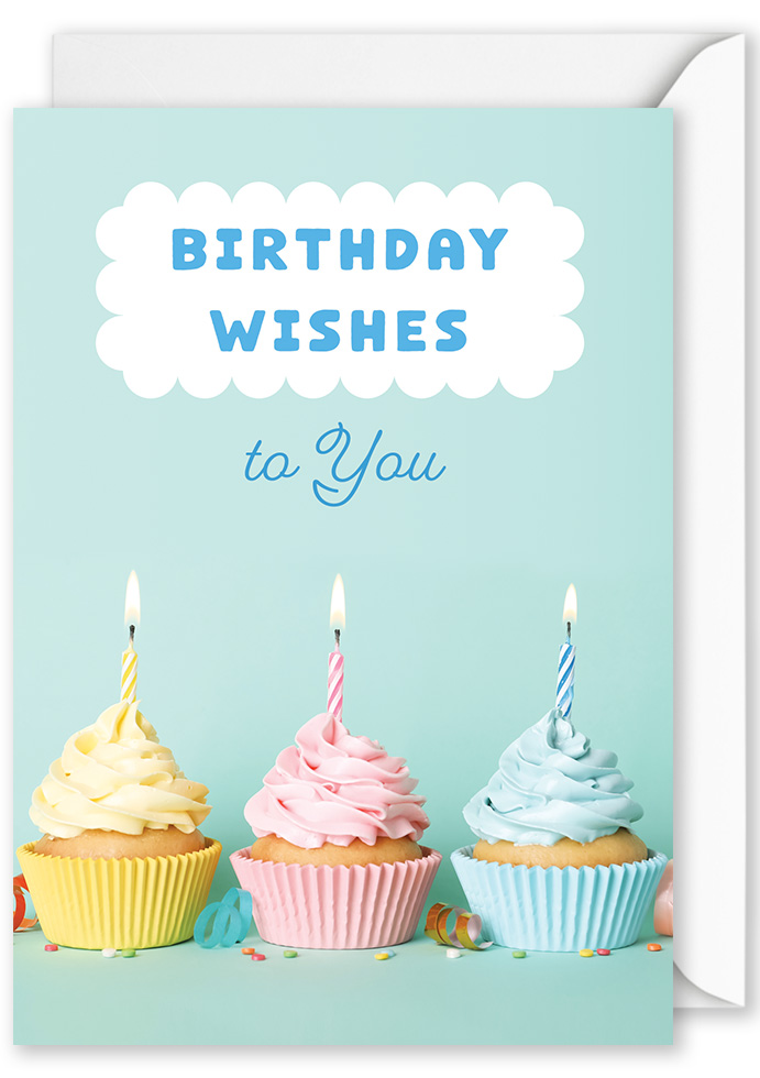 Birthday Card: – “birthday wishes to you” _ pastel cupcakes