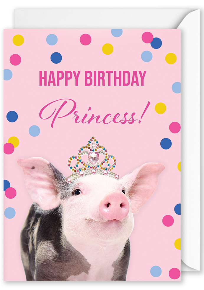 Birthday Card: “Happy Birthday Princess” – Pig with crown