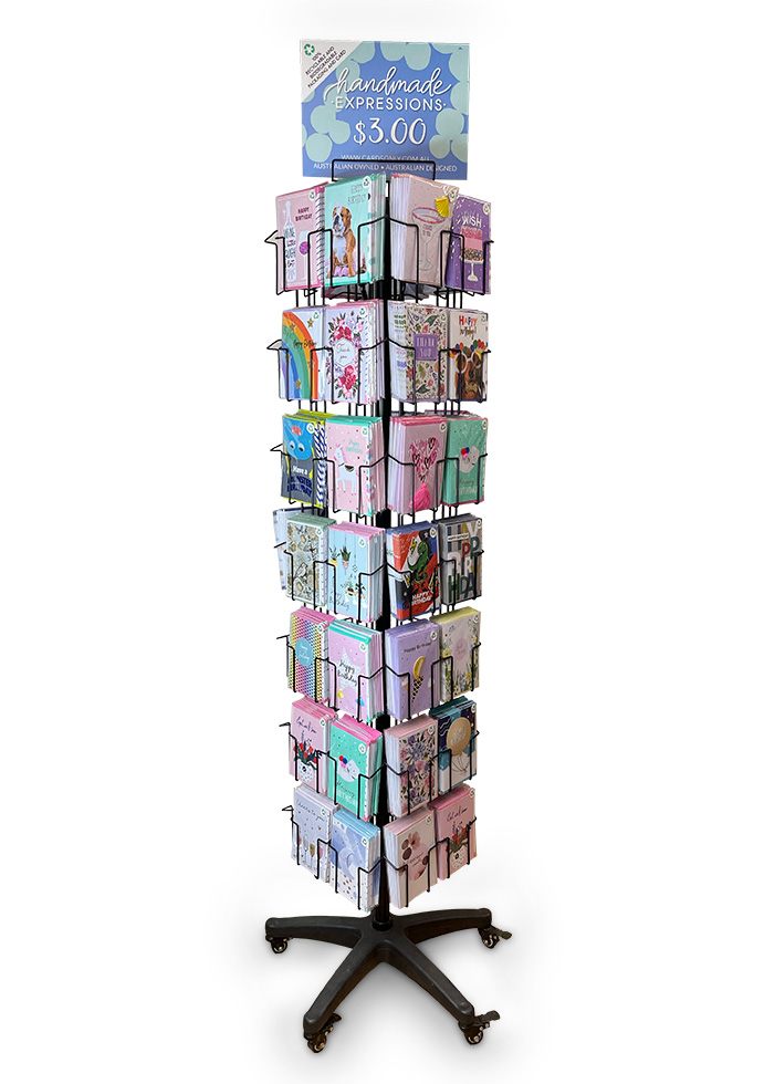 Spinner holds 56 vertical greeting card packs.
