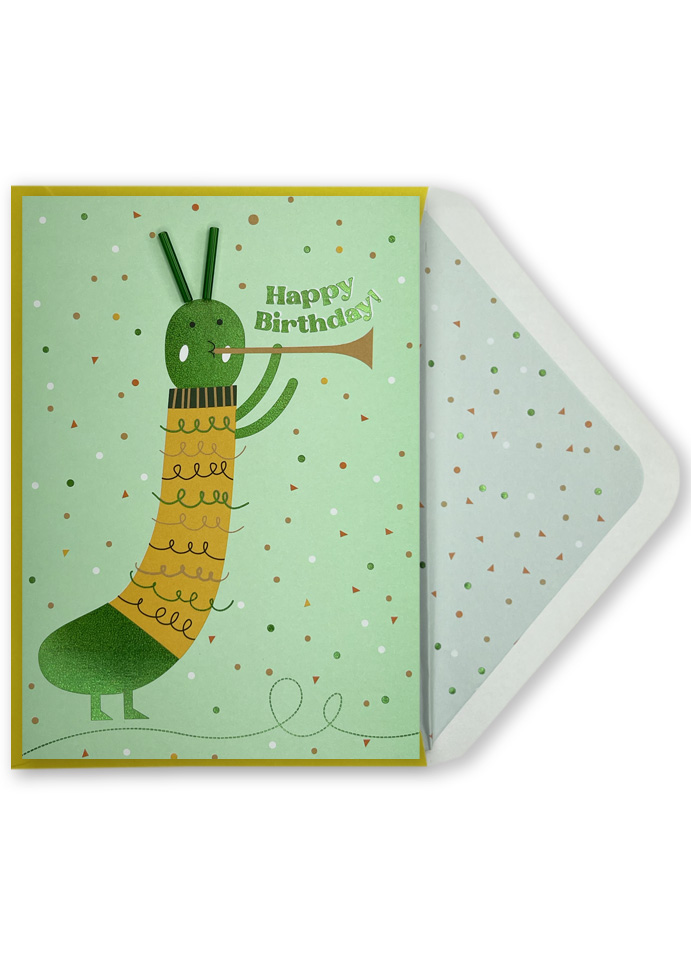 Embellised Vertical Card: Happy Birthday – Caterpiller