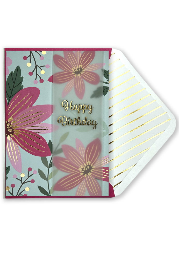 Embellised Vertical Card: Happy Birthday – Pink Floral