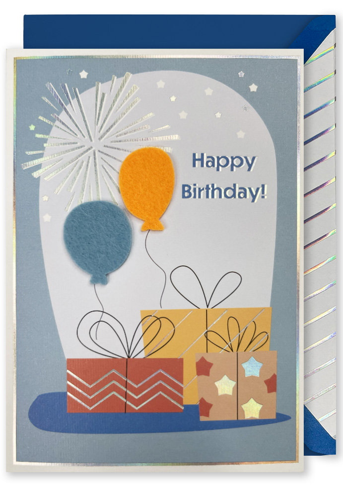 Embellised Vertical Card: Happy Birthday – Balloons and Gifts