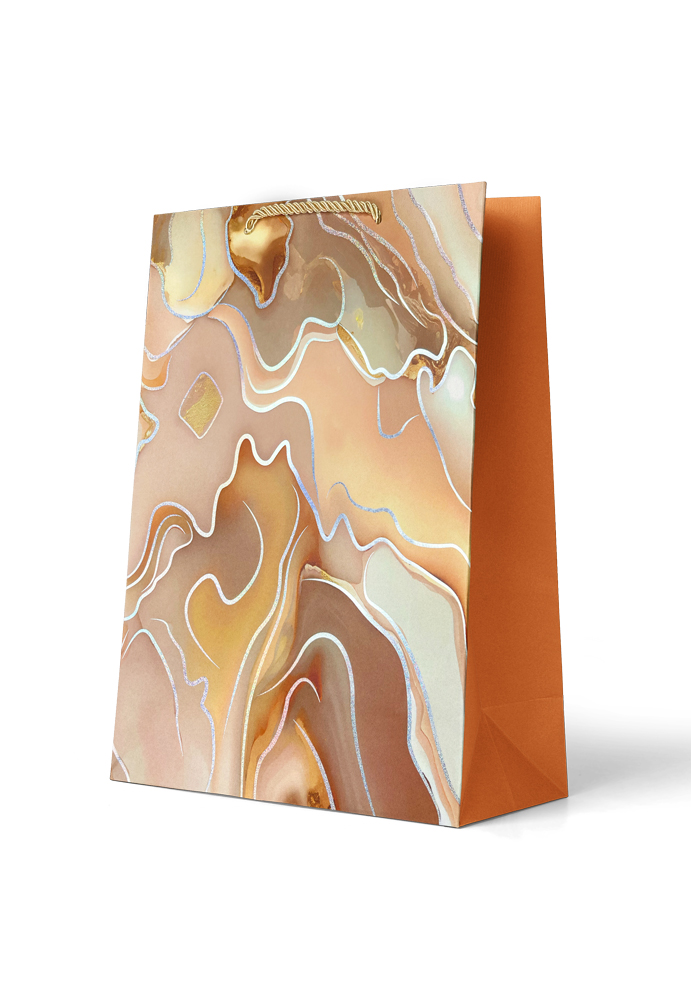 Premium Gift Bag Large: Gold Grey and White Paint Swirls