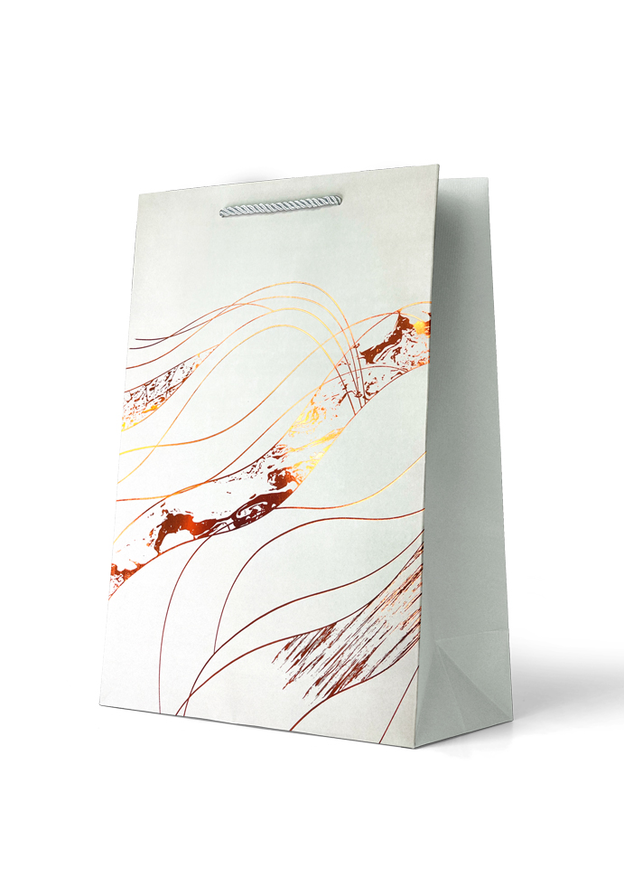 Gift Bag Large: Foiled Gold Wavy Lines on White