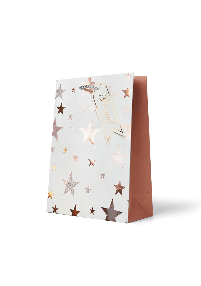 Gift Bag Medium: Foiled “For You”Gold and Silver Stars
