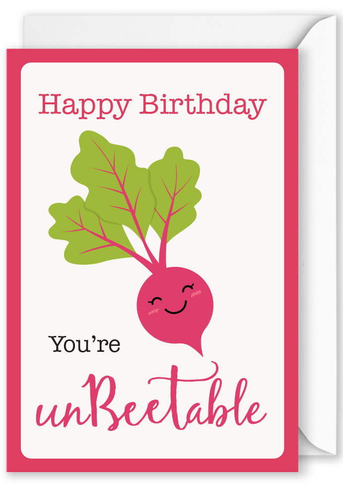 “Happy Birthday You’re unbeetable!” – Beetroot with Smiling Face