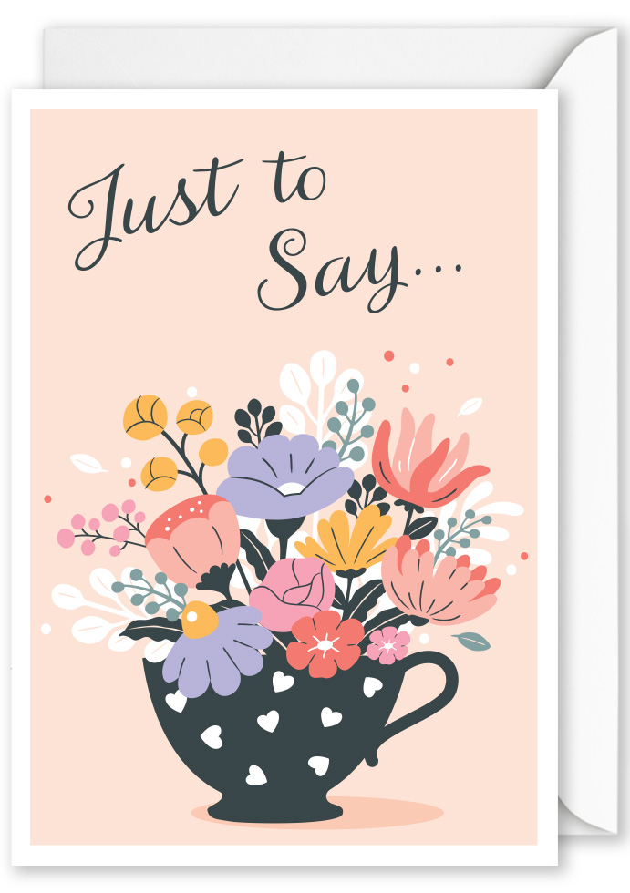 just to say Card: – “just to say” cup with flowers