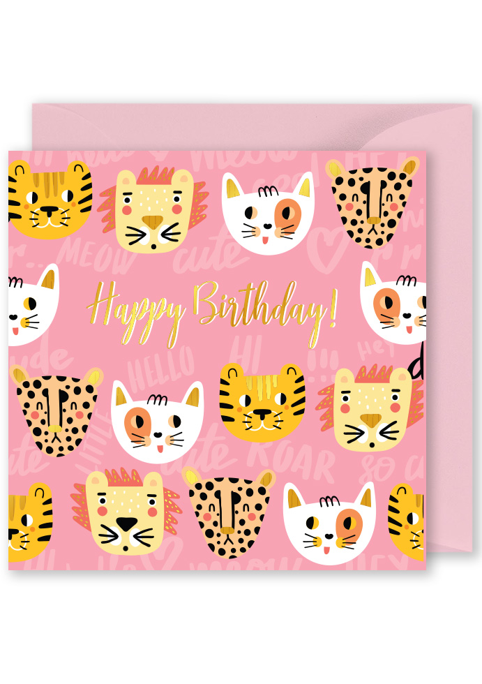 Oak Press Foiled Square Card: OP2206_cats faces birthday