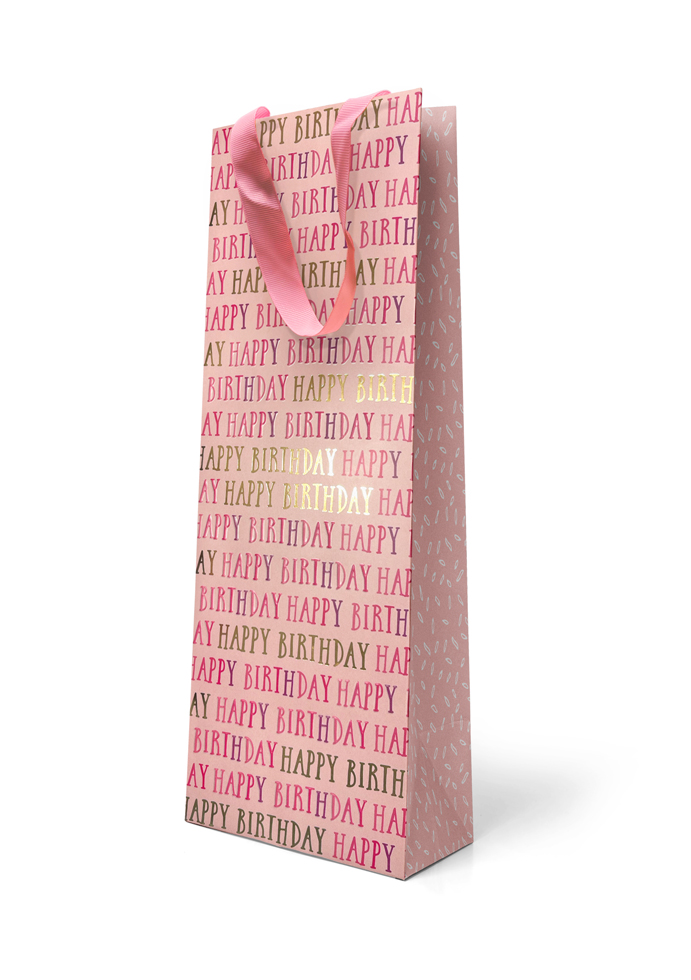 Premium Gift Bag Bottle: Embossed & Foiled “Happy Birthday” in Pink