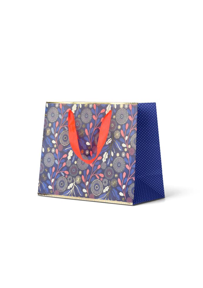 Premium Gift Bag Medium: Embossed & Foiled Blue Floral Circle Pattern
