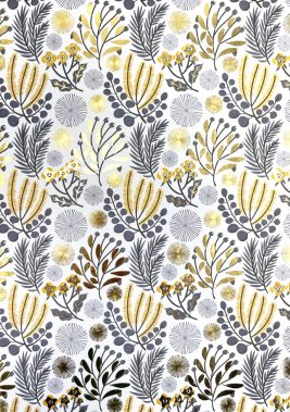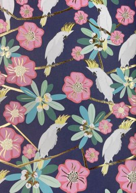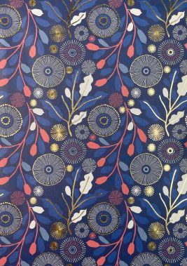 Foiled: Pastel Flowers and Gold Leaves on Dark Blue