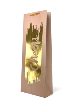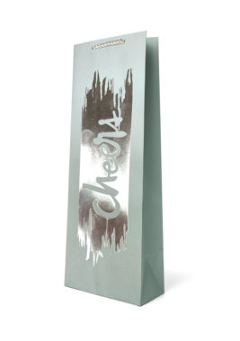 Bottle Bag: Foiled Silver “Cheers” on Light Green