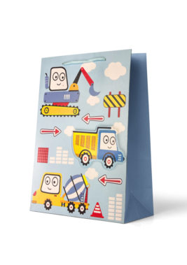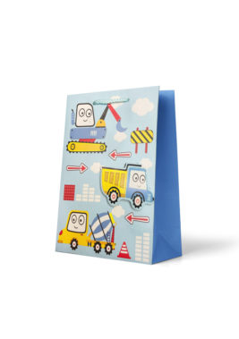 Premium Gift Bag Medium: Construction Vehicles on Blue