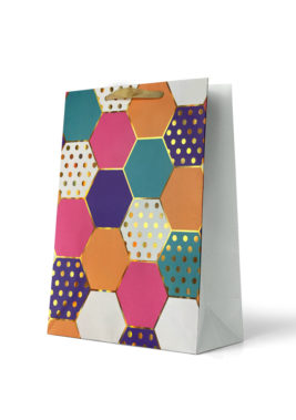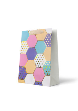 Gift Bag Medium: Foiled Pastel Hexagons with Gold Dots