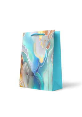 Gift Bag Medium: Foiled Turquoise and Gold Marble Swirls