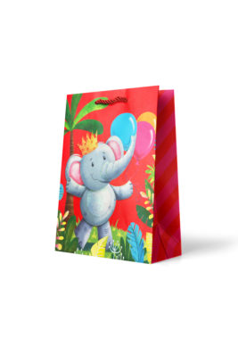 Premium Gift Bag Medium: Elephant with Balloons on Red